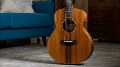 Taylor GS Mini-e Koa: Stunning solid Koa top, layered Koa back/sides. Compact acoustic-electric with big sound & easy playability. Features ES-B electronics w/ tuner. Ideal for travel & home. Incl. gig bag. Get yours perfectly set up at Town Center Music!